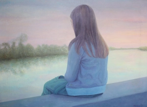 Sin salir del circulo familiar como protagonistas de sus cuadros, resulta interesante por lo que tiene de simbólico, apartándose del mero registro identitario, tres composiciones que aún teniendo una vez más a una de las hijas del pintor como modelo, en edad ya adolescente, contienen una intencionalidad cuya lectura se presta a sugerentes deducciones Hermas en el río 1978, es una composición donde figura y paisaje se funden con un sentido distinto de haberse abordados por si solos como género temático, en realidad el argumento que se expone, es el de la contemplación, el de un estado de ensimismamiento ante la naturaleza por parte de una joven que centra su mirada en el manso transcurso de un río, un estado de sosiego que se transmite al espectador. Al estar de espaldas y por tanto ser anónima, adquiere una dimensión universal en el que cualquiera puede asociarse Con parecida idea Claudio lo volverá a repetir al realizar el cartel para las fiestas de primavera de Sevilla en 1989, donde reitera la posición de su hija ataviada con el típico traje de gitana de espaldas y acomodada desde la barandilla del puente al río Guadalquivir, interpretación fuera de lo convencional en este tipo de publicidad que sin dejar de aludir al motivo que lo promueve, suscita unas connotaciones sensitivas de calma e incluso de cierta melancolía acentuada por ese carácter difuminado y atmósfera empañada tan del gusto del autor. Esta sensación de quietud se observa también en Sensi la Cansina 1981, visión desde el interior de la vivienda, en que la protagonista sentada en el quicio de la entrada de la casa donde pasaba las vacaciones la familia, sirve de enlace con una naturaleza de horizonte ilimitado, dentro de un acertado encuadre